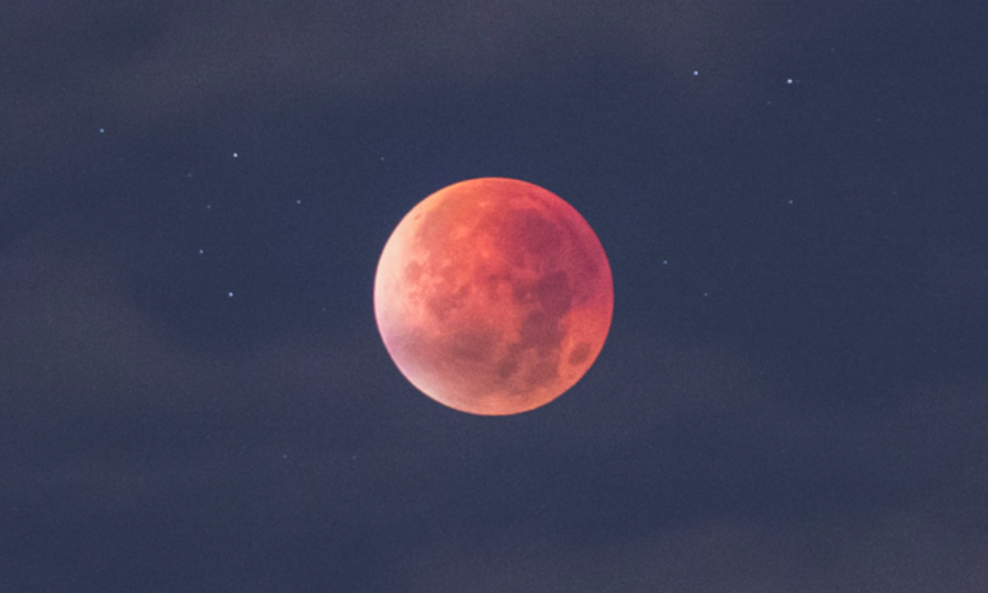 A menudo durante un eclipse lunar total, la luna no está completamente obscura, sino que está débilmente iluminada con una luz roja debido a la refracción de la atmósfera de la tierra que filtra los rayos azules del sol. En estos tiempos modernos, la alta concentración de dióxido de carbono en la atmósfera contribuye a darle ese color rojo tan espectacular a la luna.
